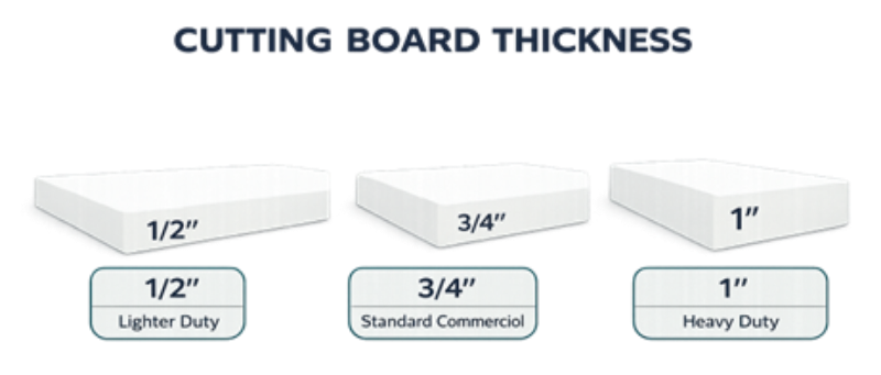 Cutting boards are available in multiple thicknesses, typically ranging from ½" to 1½" or more.